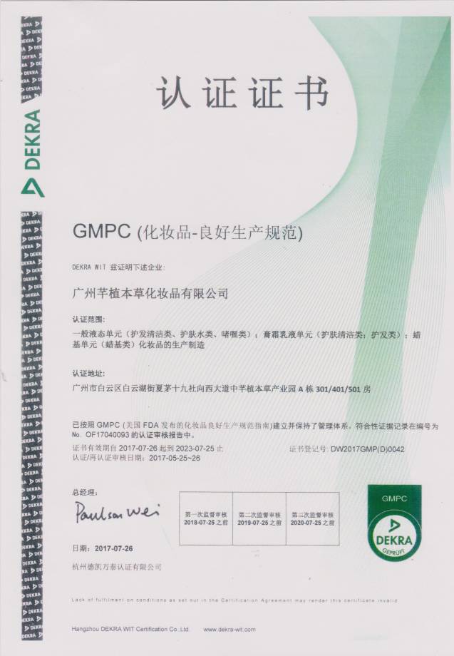 广东盛美健康产业集团旗下子公司-广州芊植本草化妆品有限公司,公司成立于2007年,是一家集专业品牌策划、研发、生产、营销为一体的大型化妆品制造企业。公司先后通过ISO9001、GMPC、ISO2271...