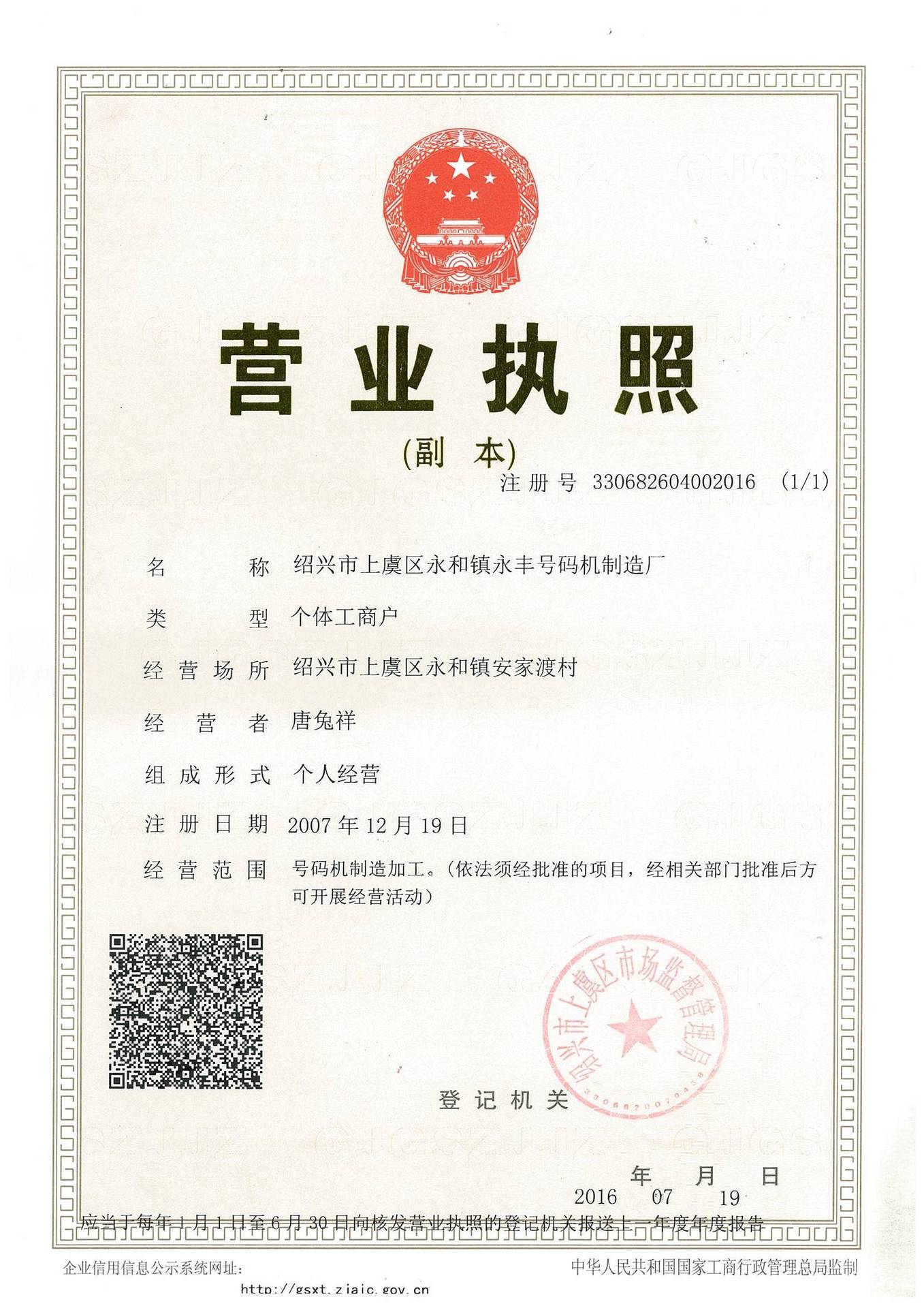 绍兴市上虞区永和镇永丰号码机制造厂
