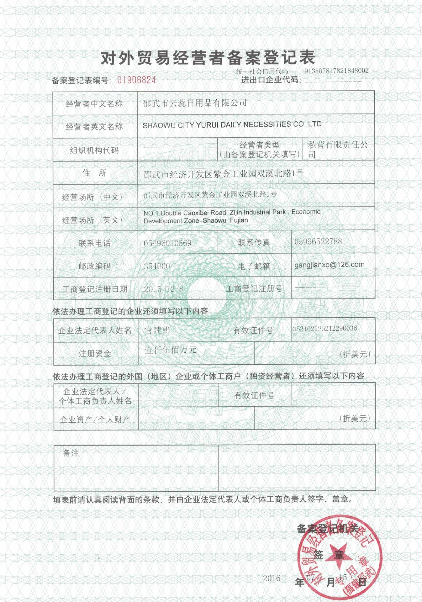 邵武市云蕊日用品有限公司