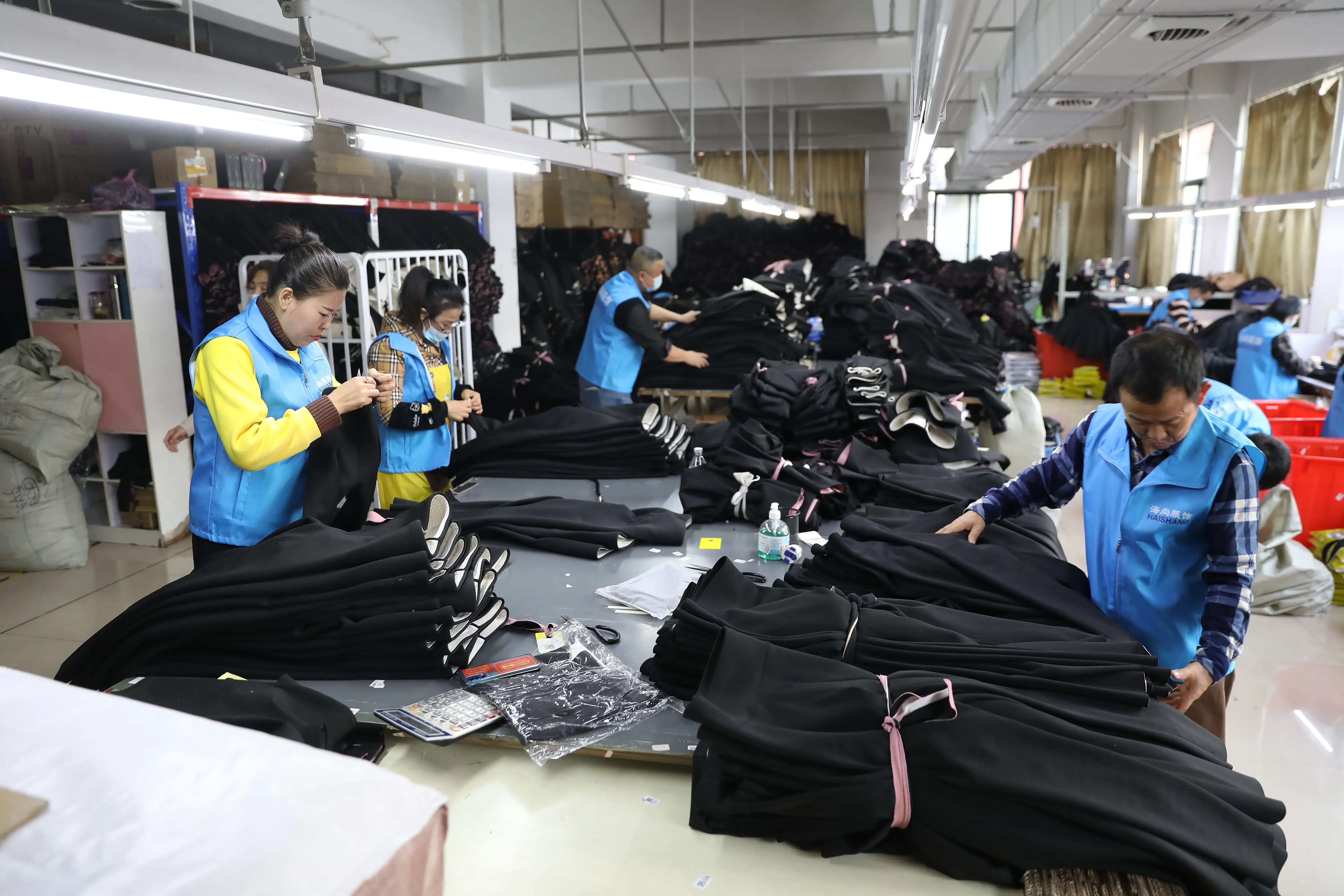 海尚服饰是一家拥有近20年服装生产设计经验的智能型工厂,目前公司有生产车间6000多平方,公司员工200多人。公司以人为本,建立了一支追求高品质、重研发、速度快、追求最高客户满意度为中心的企业团队。