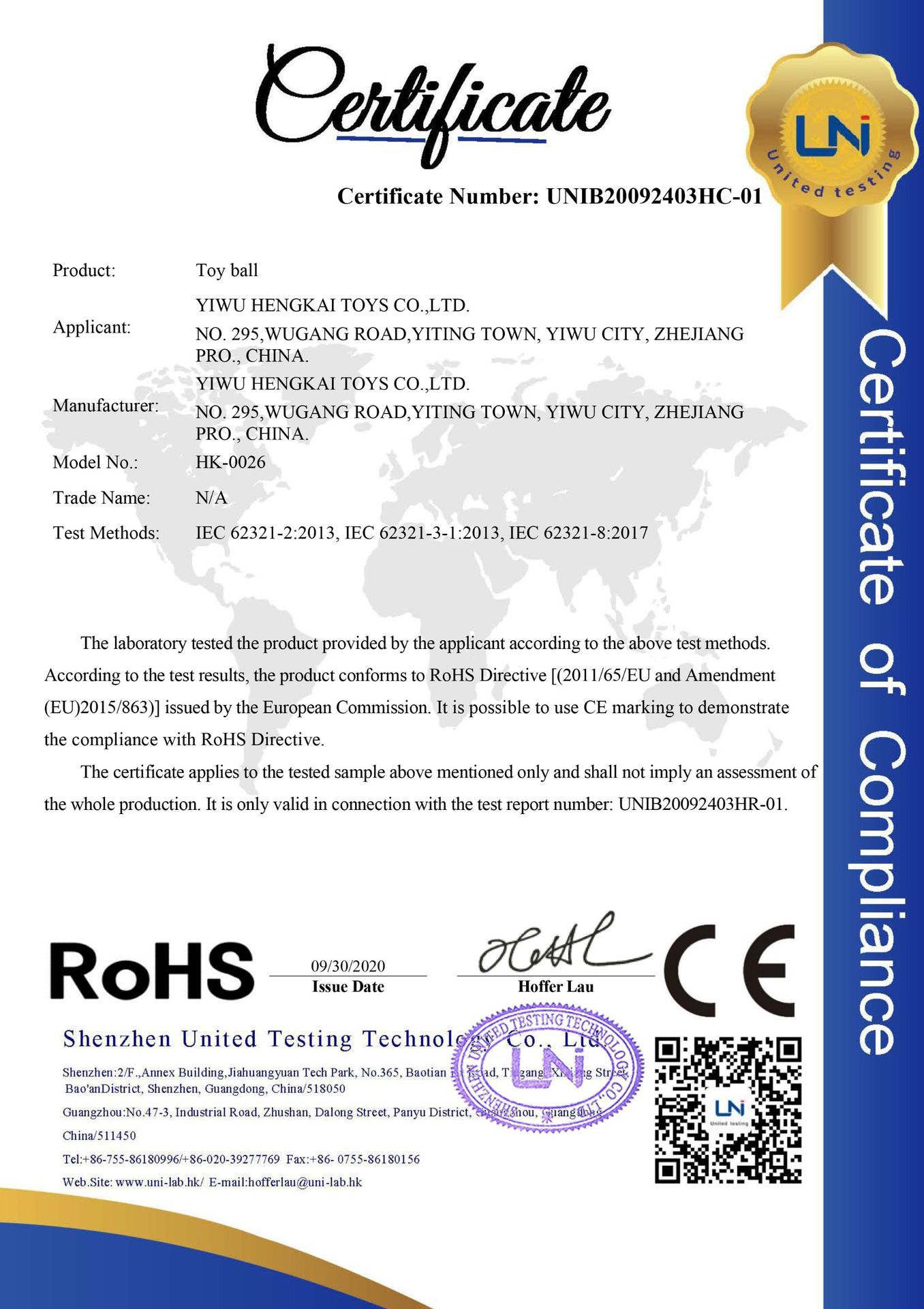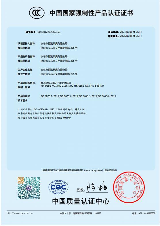 义乌市恒凯玩具有限公司是一家集开发,生产,销售各式塑胶TPR玩具闪光弹力球.闪光产品系列.礼品.促销品的专业生产厂家.本厂所生产的产品符合欧规“EN71'及美规”ASTM'。邻笨二钾酸盐报告测试等安全...