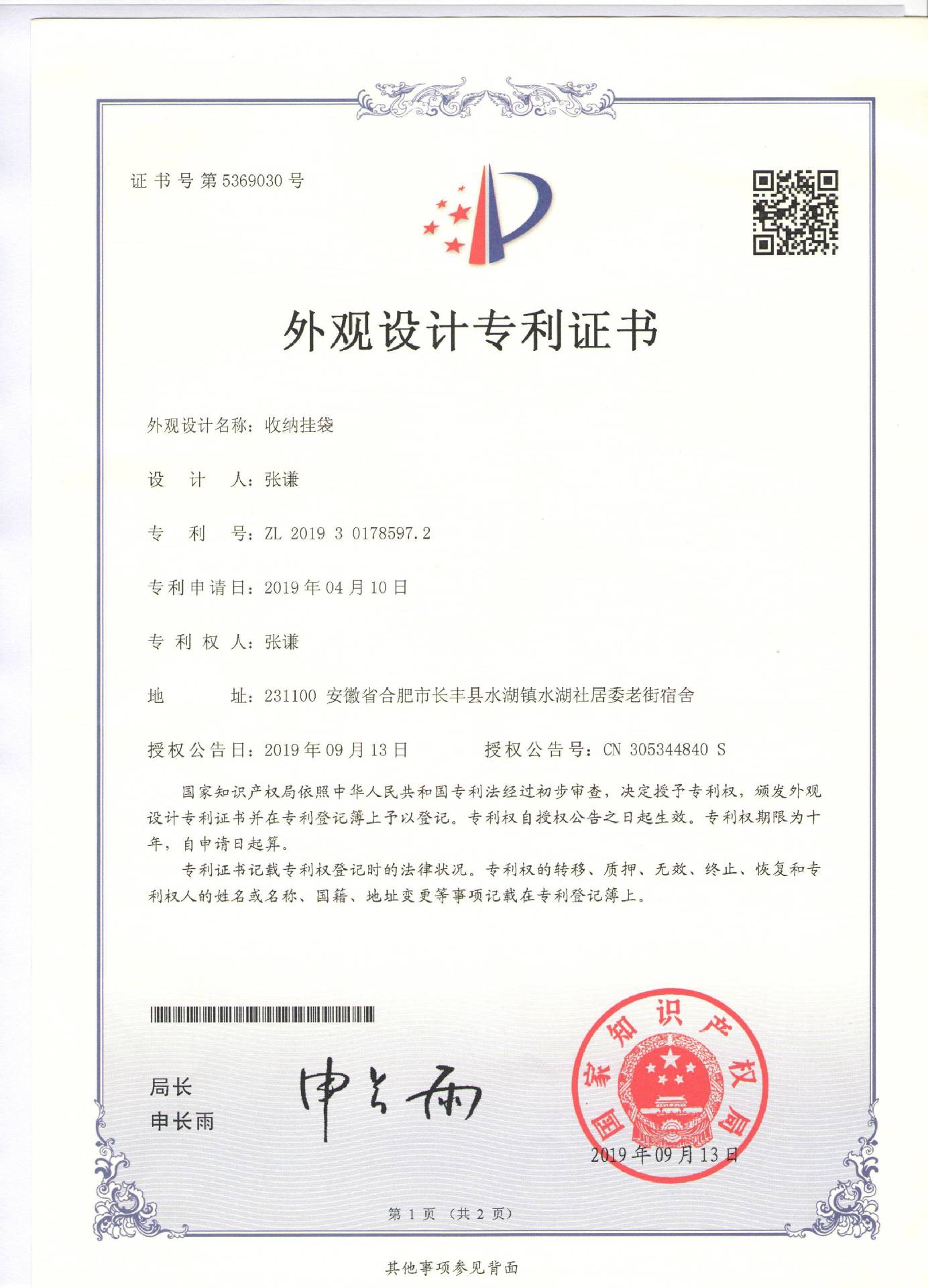 门后挂袋外观专利