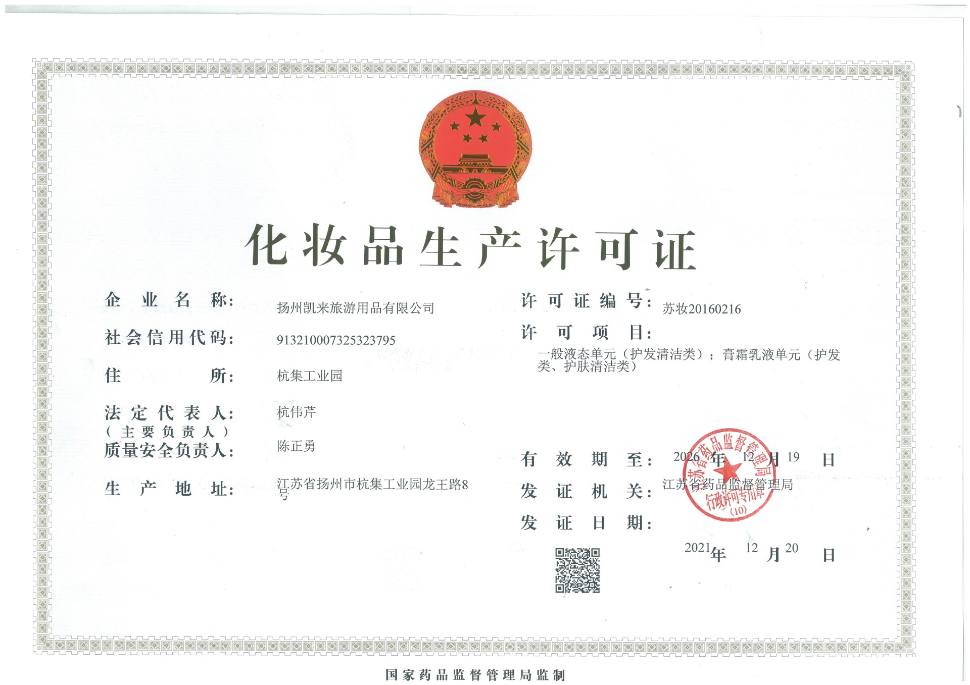 扬州市凯来旅游用品有限公司位于 中国 江苏 扬州市 邗江区 杭集工业园,龙王路8号。主营产品:酒店一次性用品、拖鞋 、牙刷 、梳子 、肥皂 、毛巾等