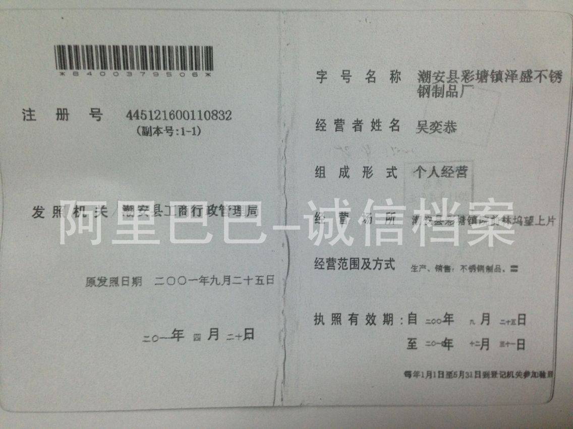 潮州市潮安区彩塘镇泽盛不锈钢制品厂