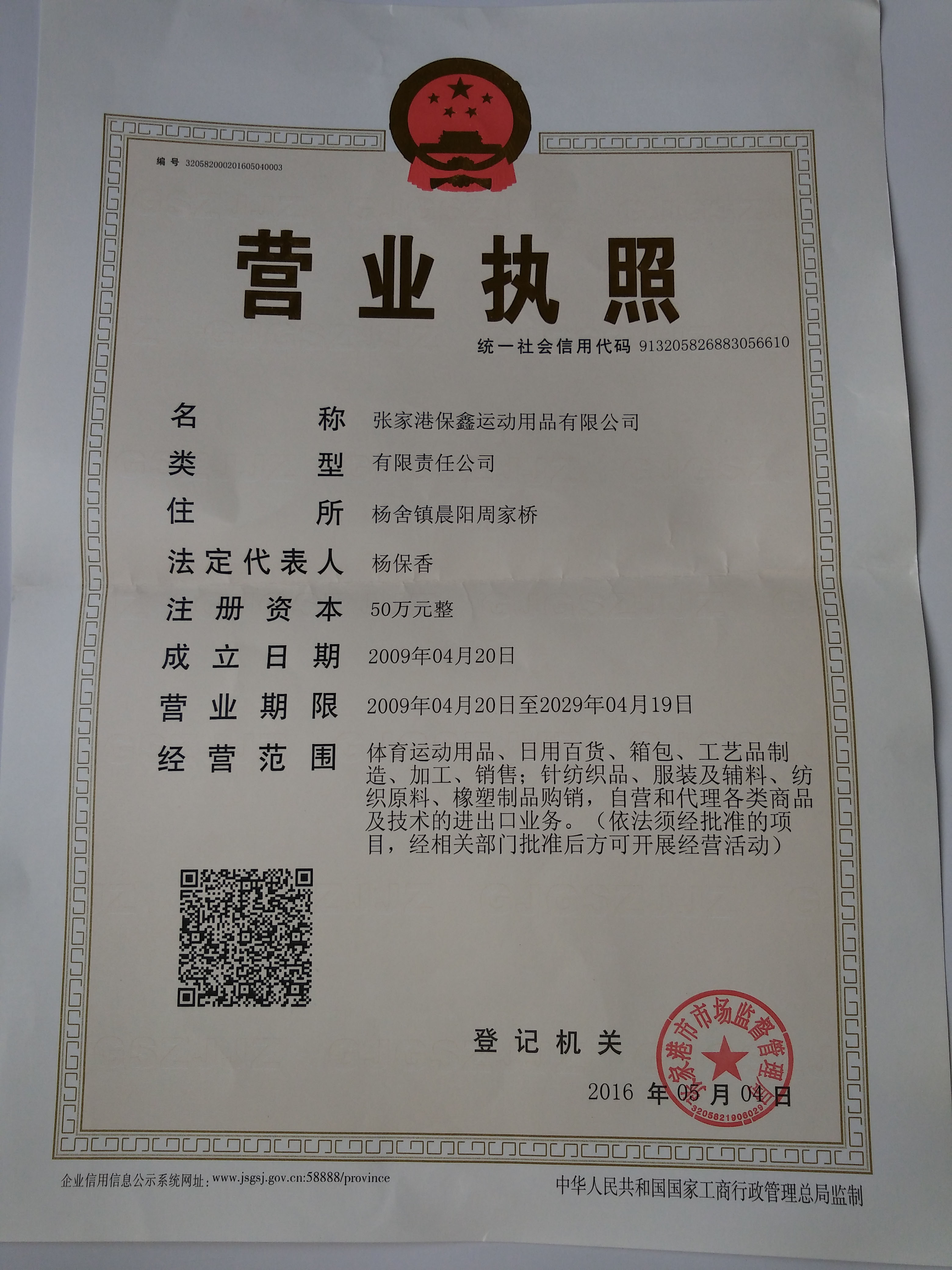 张家港保鑫运动用品有限公司