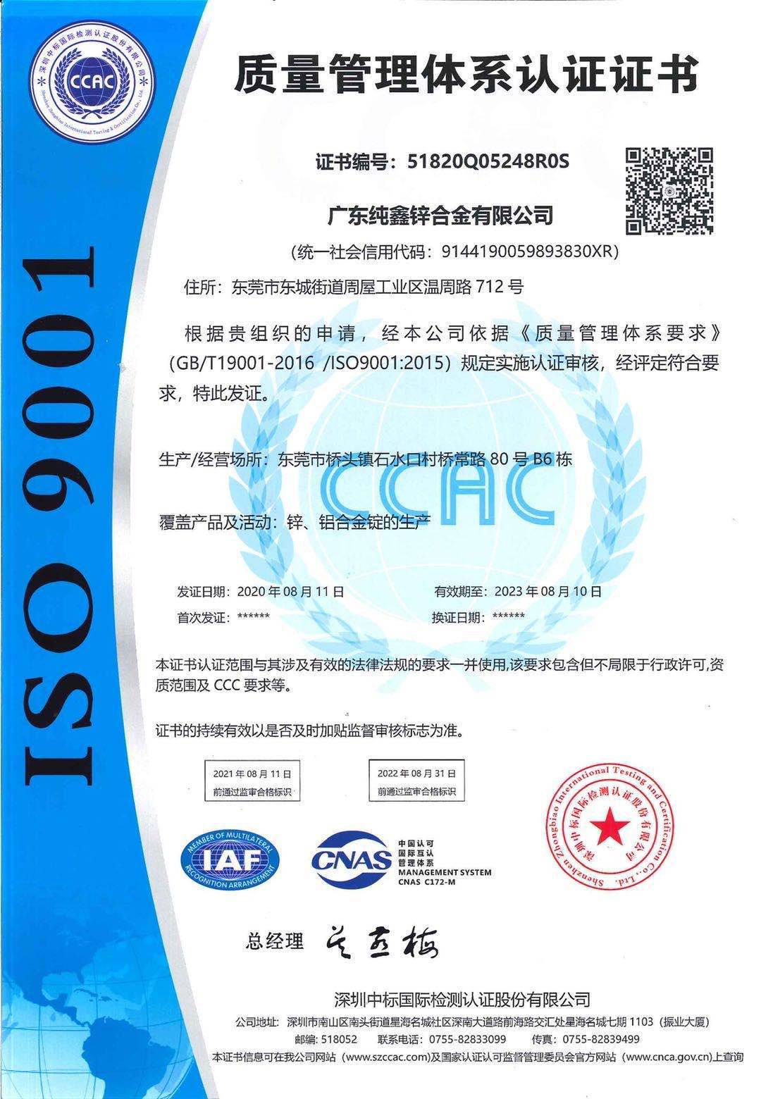 广东纯鑫锌合金有限公司