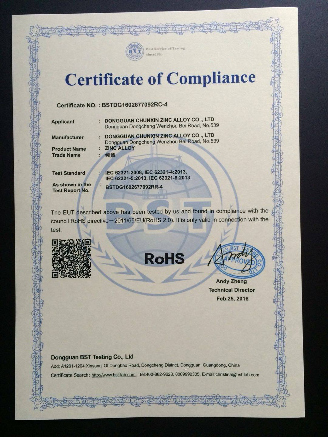 拥有RoHS认证