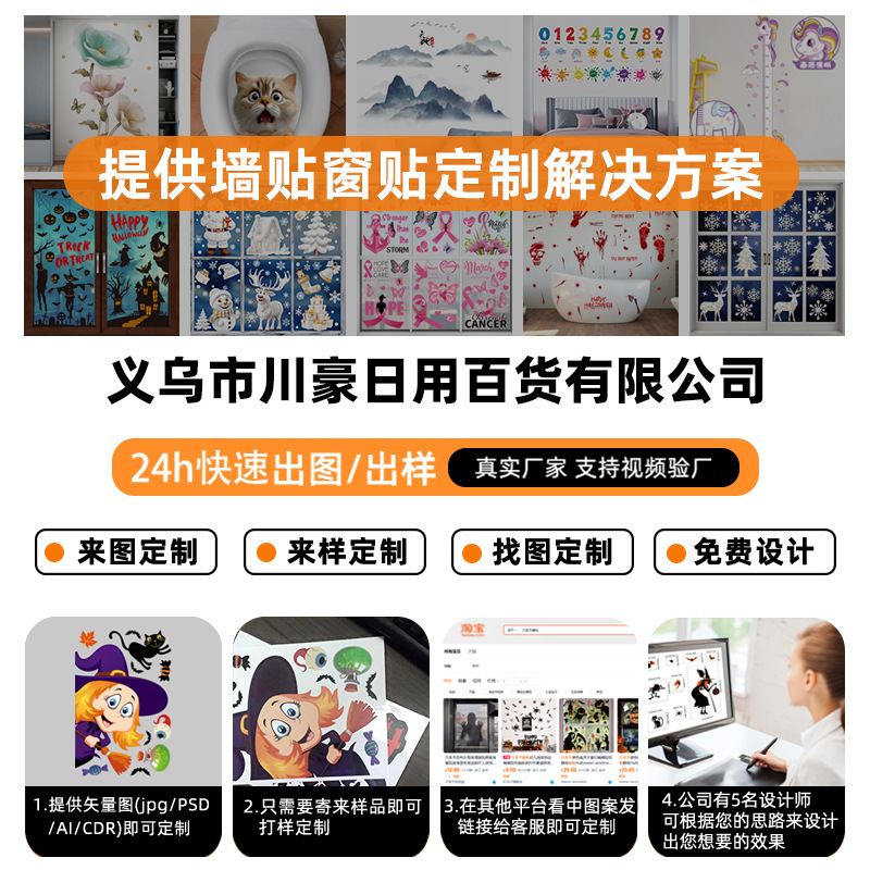义乌市川豪日用百货有限公司成立于2016年,位于义乌市,是一家专业生产PVC墙贴,身高贴,节日静电贴,新年装饰贴,墙纸.有现货品类4000种,常年有各类电商平台合同客户,本公司以"合理的价格"、"高质...