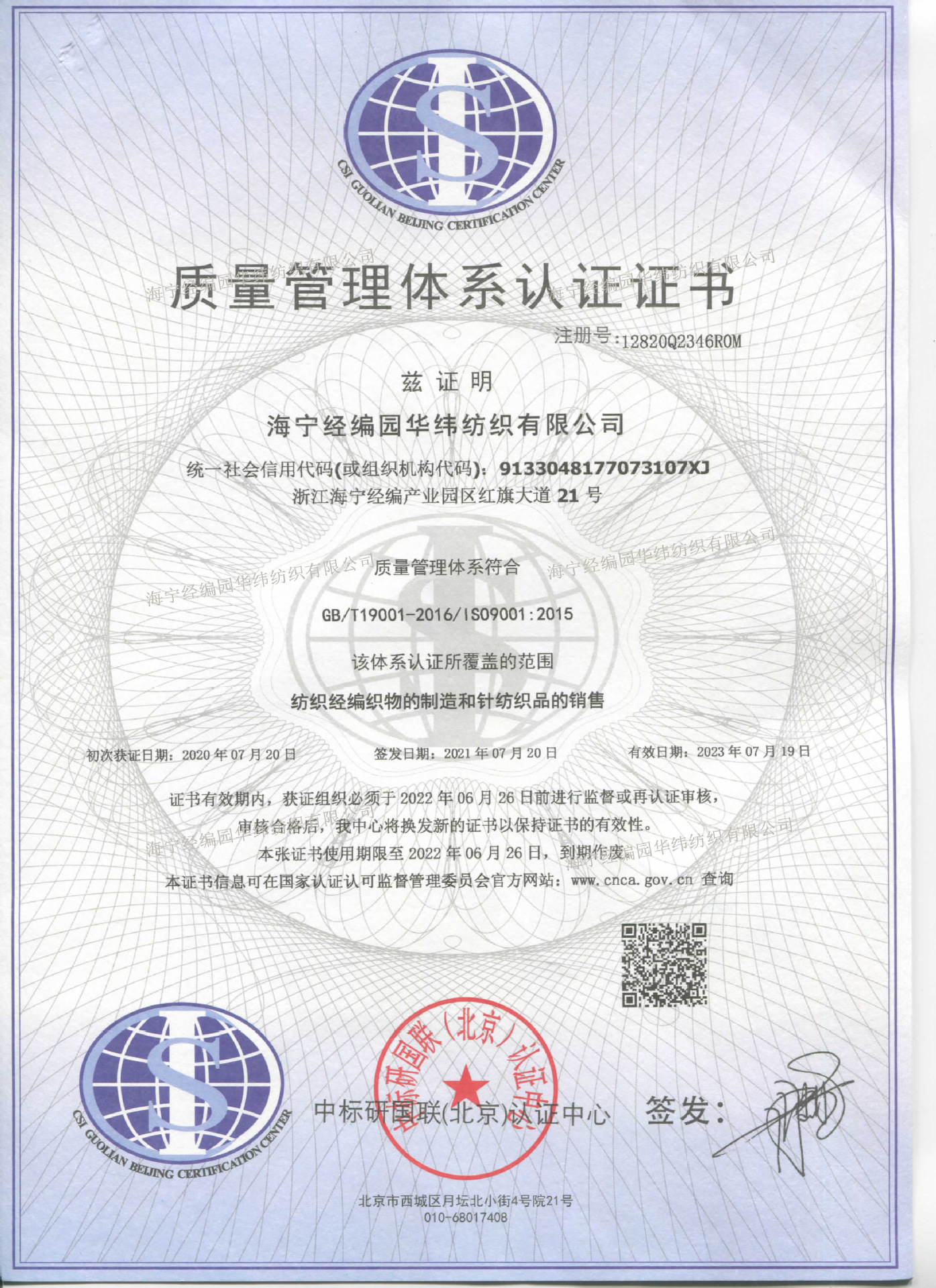 海宁经编园华纬纺织有限公司