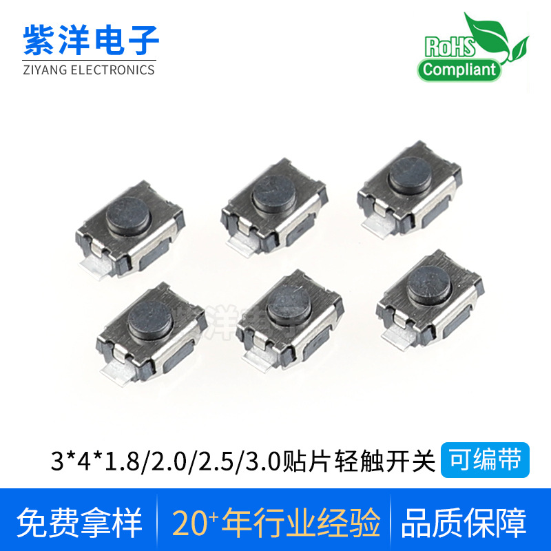 乐清市紫洋电子是一家专业生产轻触开关系列的厂家,位于国家享有美誉的“ 中国电子元器件产业基地,中国精密模具生产基地 ” ——虹桥镇。本公司专业生产轻触开关、船型开关、按键开关、按钮开关、微动开关、拨动...