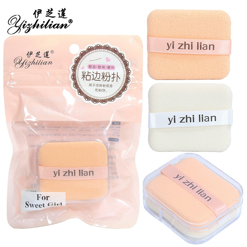 伊芝莲两片盒装方形高档粘边丝带粉扑批发柔软美容海绵化妆扑