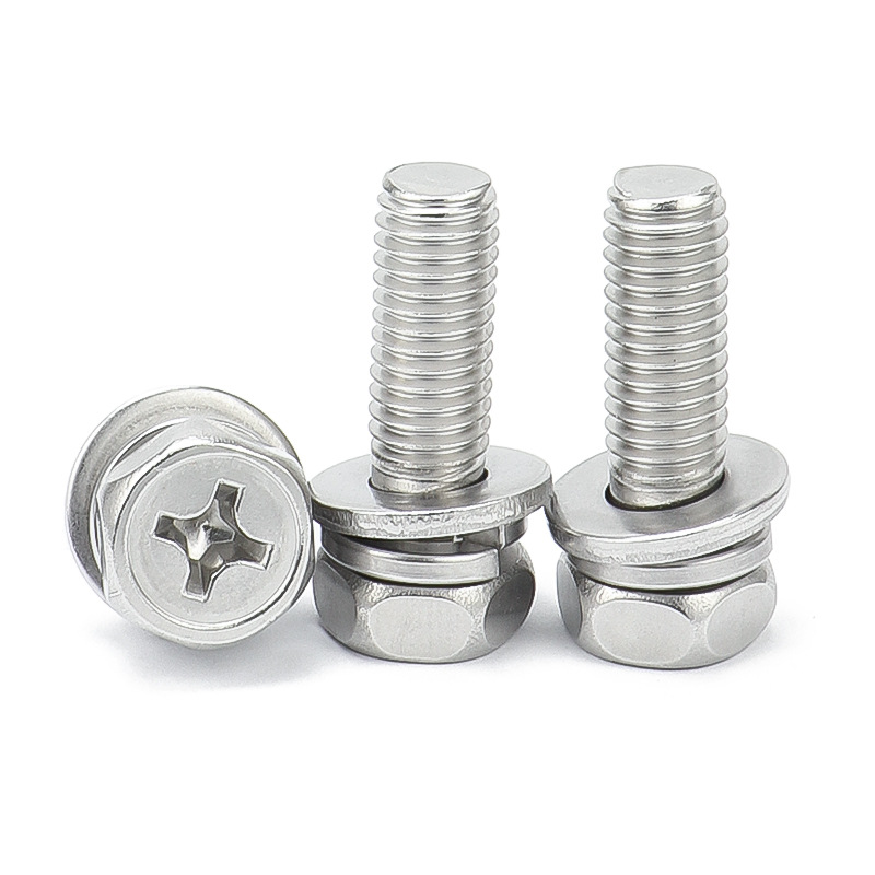 304不锈钢光面内六角螺丝钉三组合螺栓圆柱头平弹垫片M3M4M5M6M8