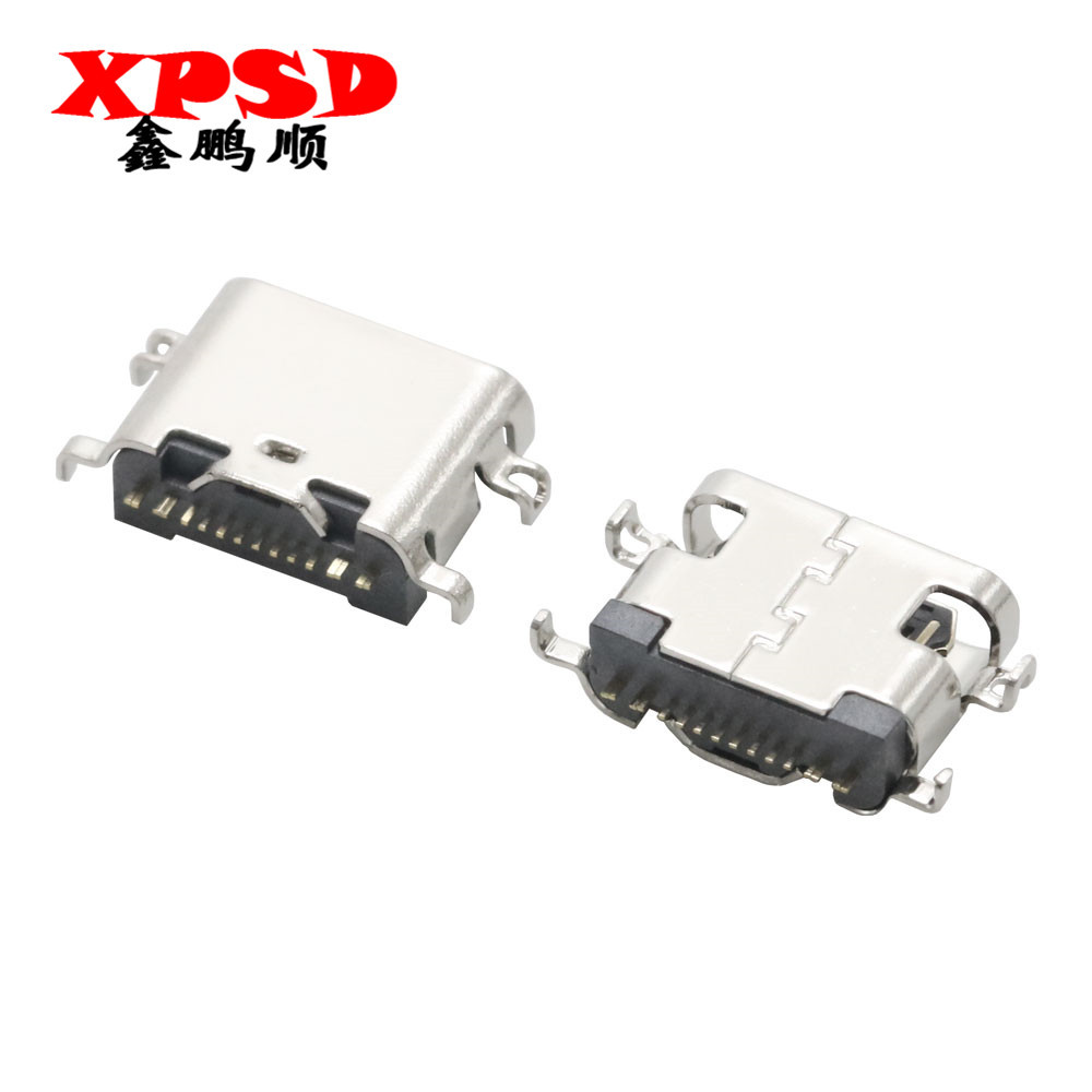 type-c母座14P焊线式带板充电数据外壳带夹脚 USB2.0连接器 插头