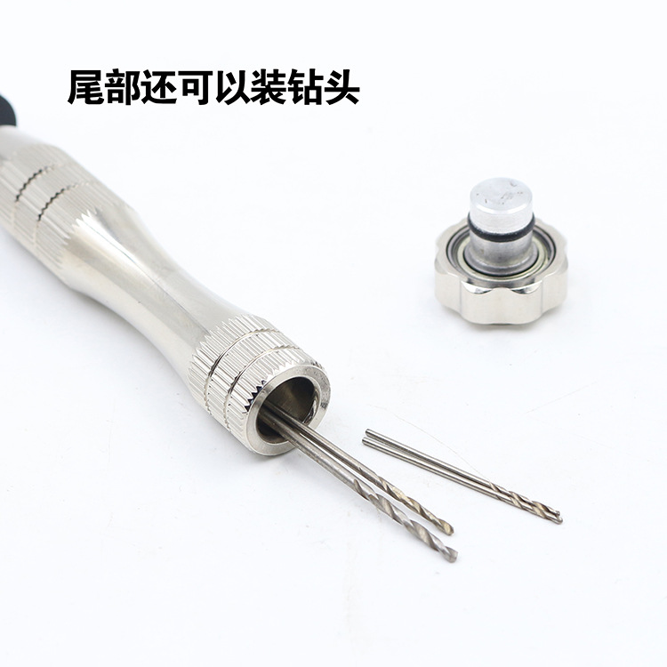 银色手捻钻配麻花钻头手动打孔工具黑色打孔钻琥珀菩提子打眼工具
