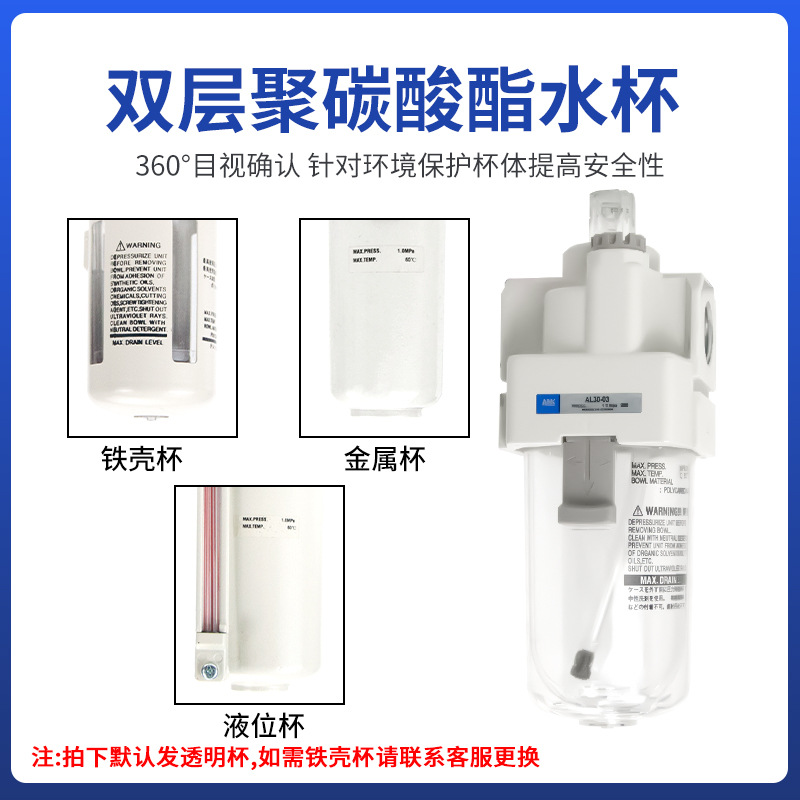 气源处理过滤器AC20-02-A AC30-03-A气泵气动三联件AC40-04D-A