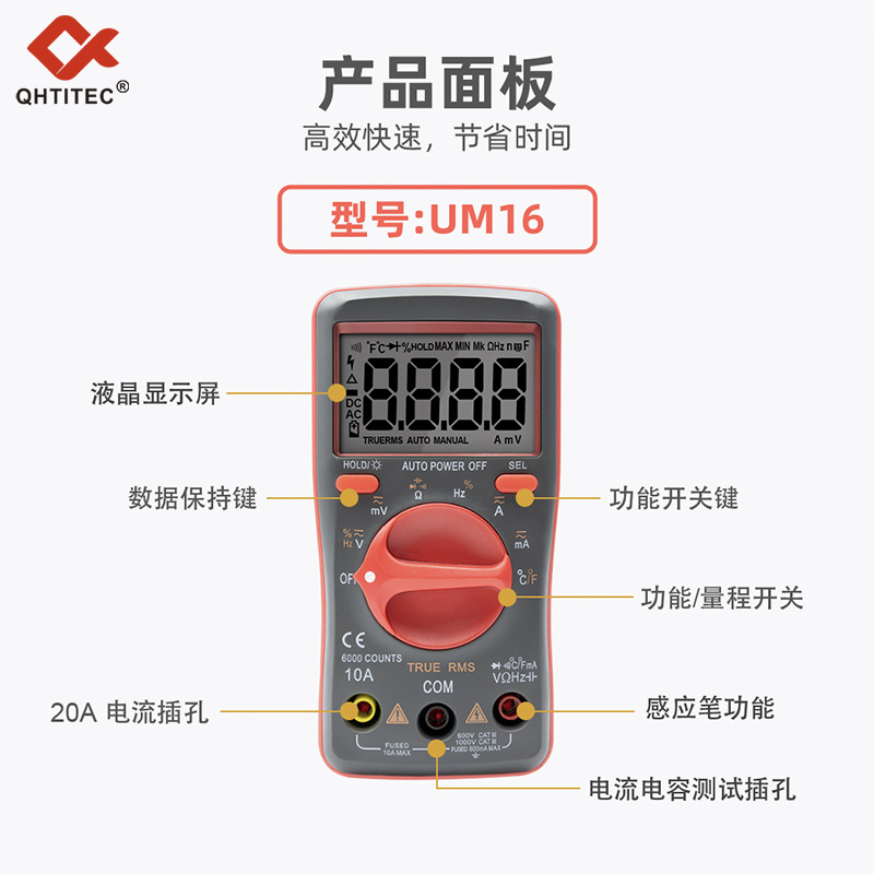 跨境数字万用表数显电压电流表电工家用万能表手持式UA9205N