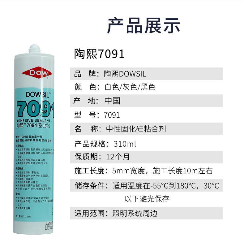 道康宁DOWSIL 7091 白色灰色黑色密封胶耐高温粘接固定胶310ML