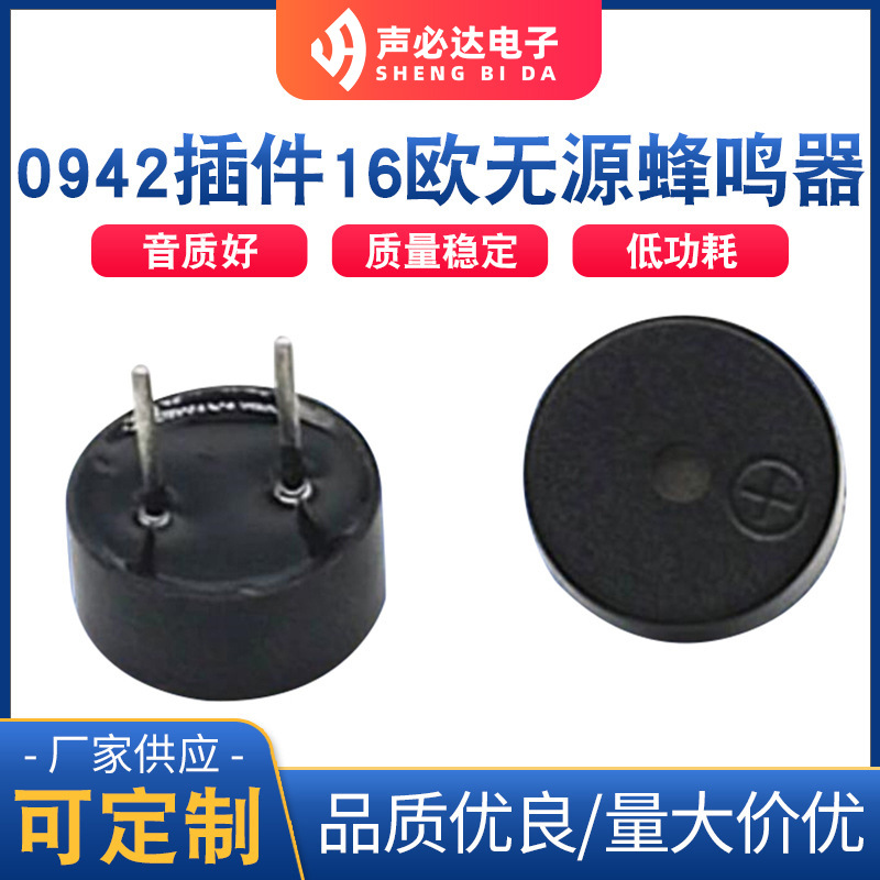 0942插件16欧蜂鸣器 无源电磁蜂鸣片 声必达厂家供应单声道蜂鸣片