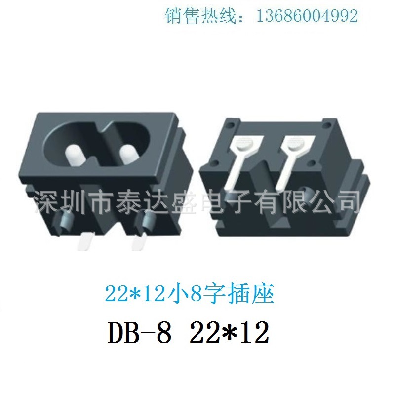 适配器22.7*17.6两芯8字插座 小弯脚黑色常用型八字电源插座DB-8