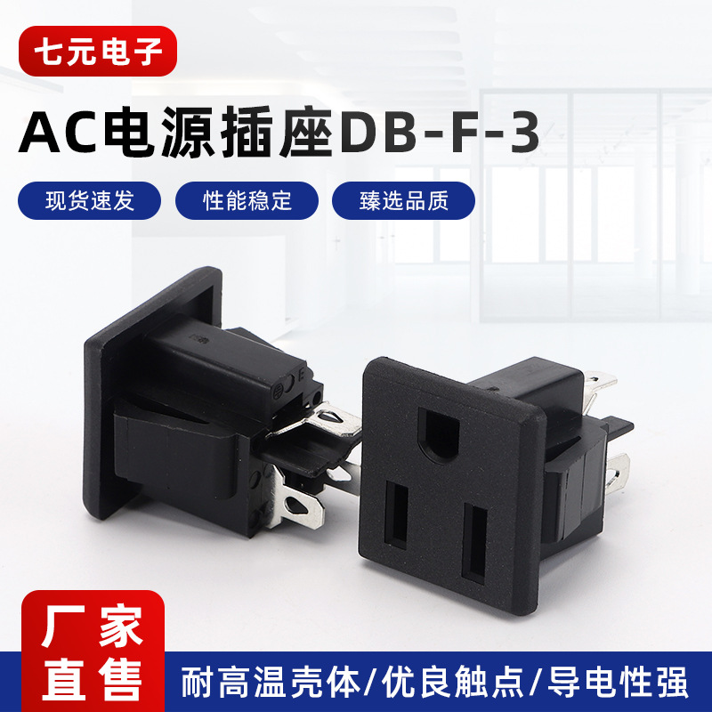 AC品字电源插座 AC-04 螺丝孔 立式 器具充电插座 实心针 CCC认证