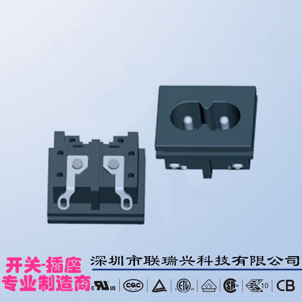 2脚分线全包围卡槽式8字插座23*18*14薄款中8字AC电源插座LH-8