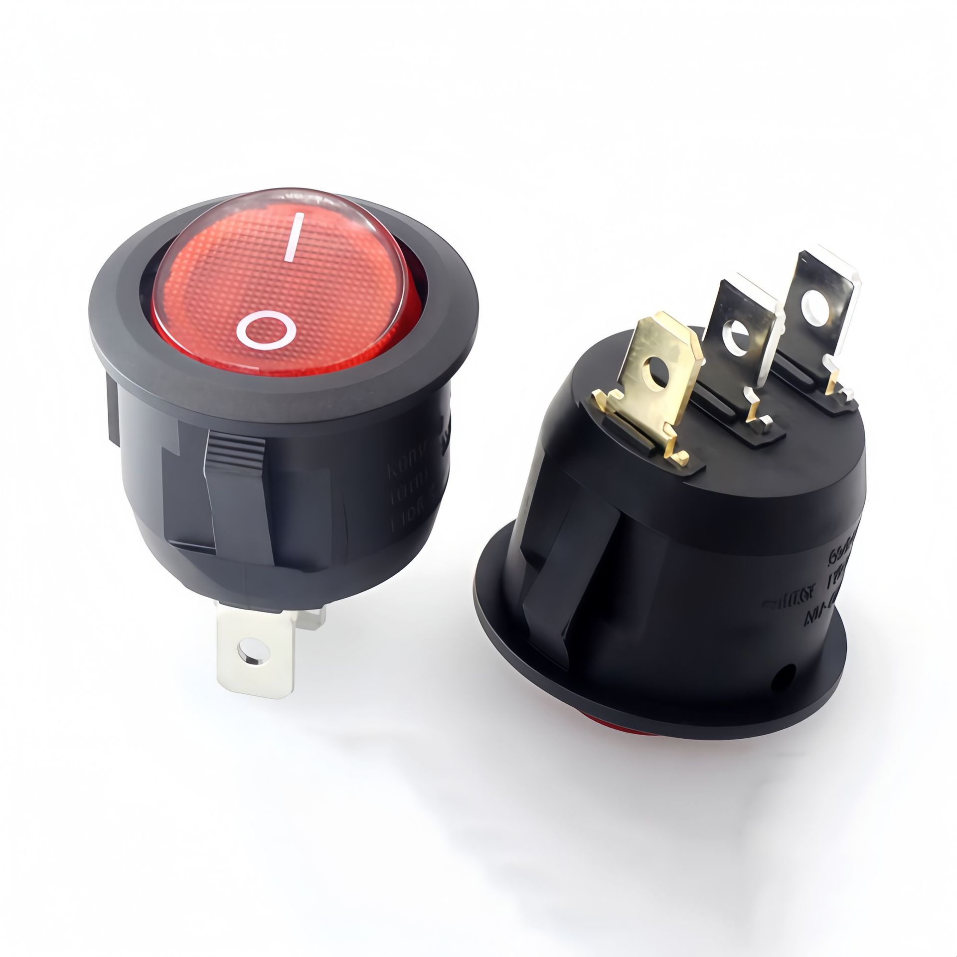 圆形带灯船型开关 3脚2档 猫眼LED灯12v24v 220V LED绿色翘板开关
