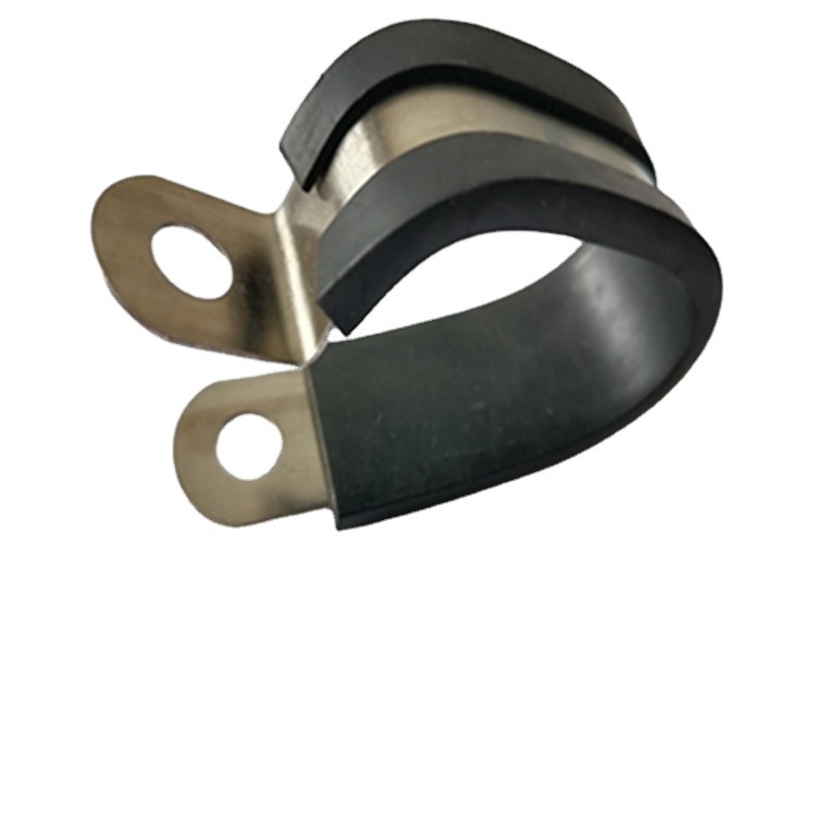 304不锈钢连胶条卡箍R型喉箍电缆电线绝缘线夹减震橡胶卡箍水管卡