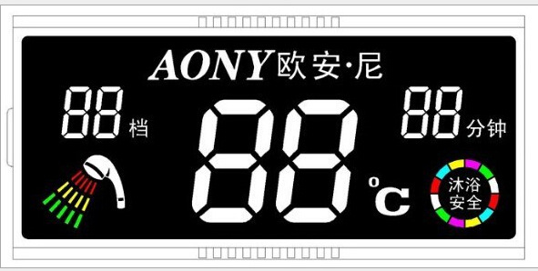 VA 断码lcd液晶屏 高对比度 黑底白字 加彩色丝印 电热水器LCD