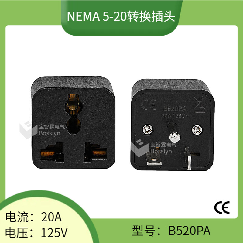 大功率5-20P美标插头转换器 美式一圆一竖一横多功能转换插头PC料