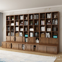全实木书架整墙书柜一体新中式客厅胡桃木色满墙家用置物架展示柜