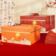 新款礼品包装盒橙色礼盒翻盖手提盒节日婚庆定制纸盒红酒月饼盒
