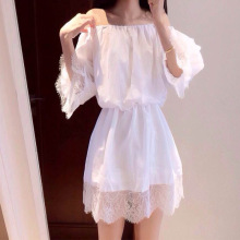 一字领蕾丝连衣裙
