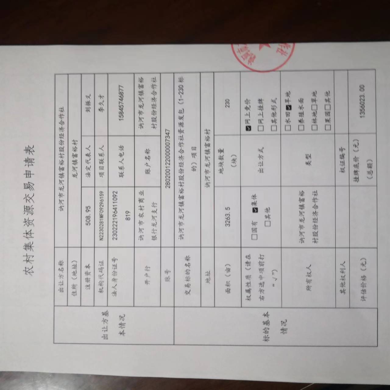 账户名称:讷河市龙河镇富裕村股份经济合作社