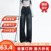 Z亚马逊批发秋季新款女装百搭高腰超宽裤腿牛仔休闲长裤4060226