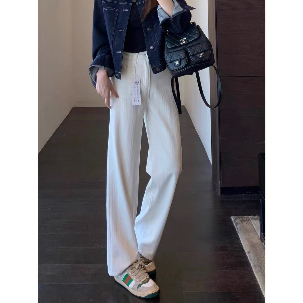 显瘦神裤 高腰显瘦窄版直筒阔腿裤白色牛仔裤女秋冬新Z0823N