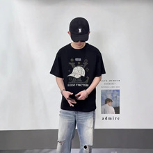 夏新款纯棉T恤女式长款短袖纯色圆领中长款棉线镶钻印花白色T恤