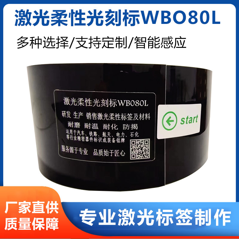 黑面白字激光柔性光刻标签150WBL耐磨防伪耐溶剂厂家供货