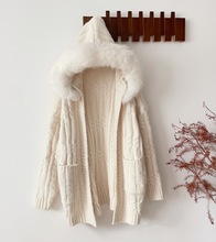乖乖日常 厚实浣熊毛衣女秋冬季新款保暖狐狸毛领针织外套