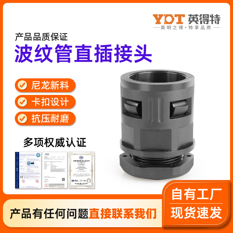 英得特尼龙软管接头快速防水波纹管接头SM-F塑料浪管固定穿线接头