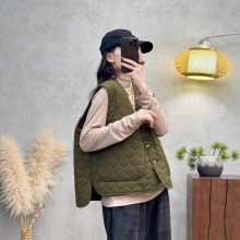 25冬季女装新款苎麻夹棉绗缝方格棉袄棉服时尚文艺个性女式短棉衣