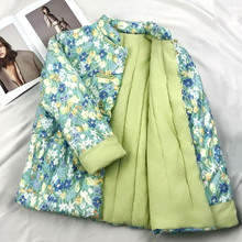 冬季新中式复古立领盘扣文艺短款棉衣国风气质印花显高棉服小棉袄