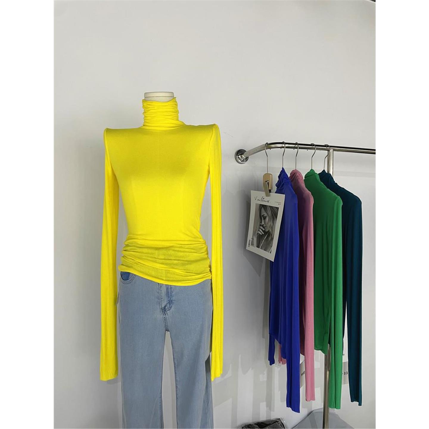 MMC 短袖针织衫女装秋季新款韩版设计感上衣修身显瘦半高领打底衫