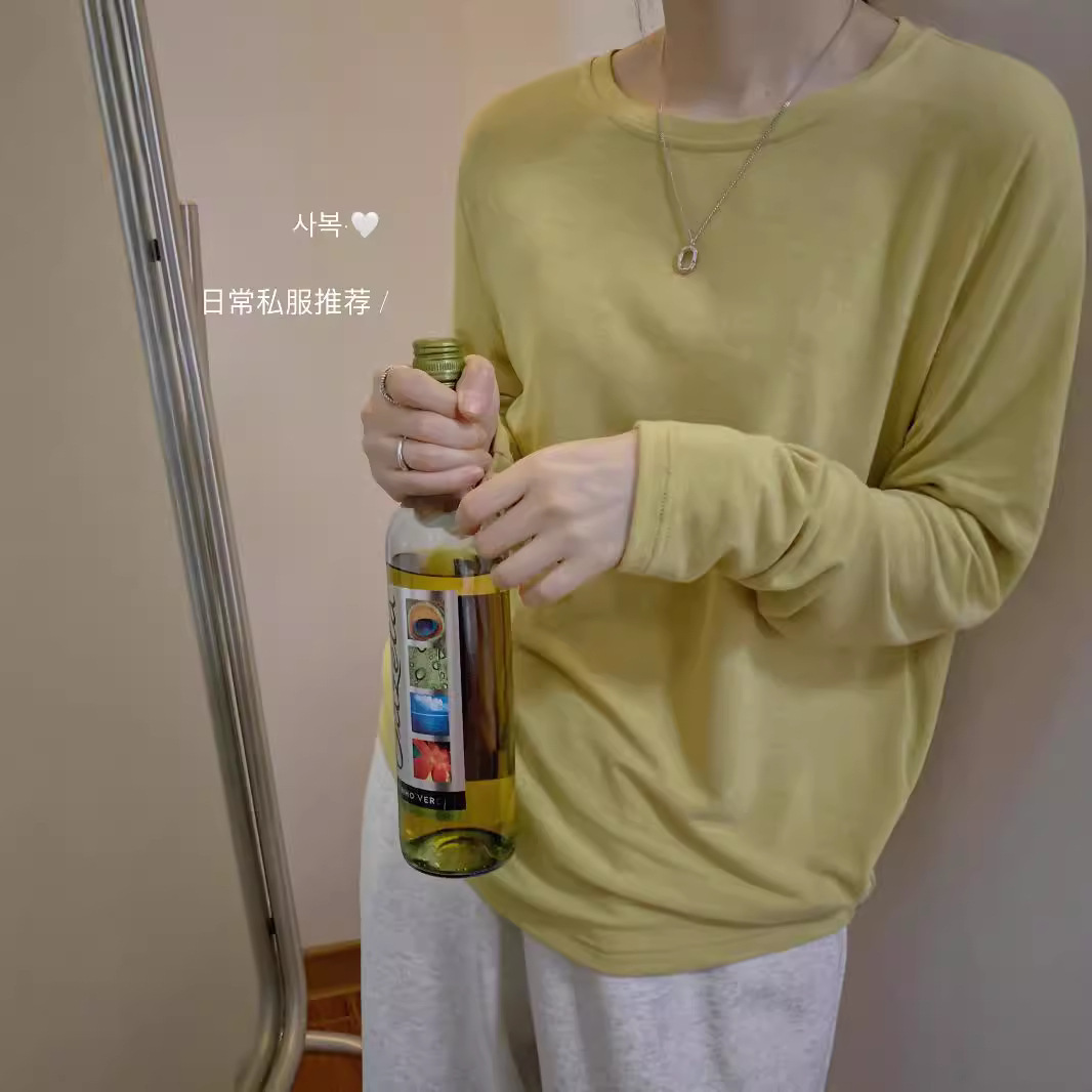 2025年新款纯棉圆领长袖t恤女春秋装宽松大码休闲百搭打底衫上衣