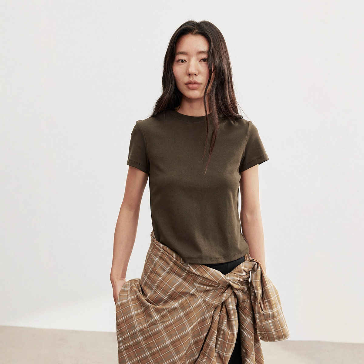 白色正肩短袖t恤女2025夏季新款小衫茶系上衣内搭打底衫 外贸批发