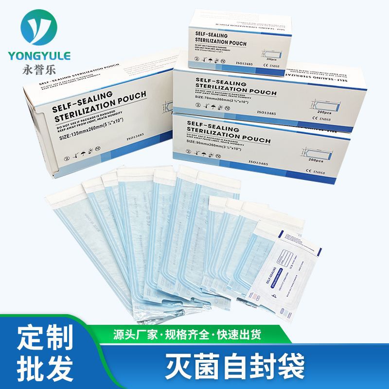 长期稳定现货纸塑袋供应200条每包自粘性灭菌袋/EO/高温蒸汽牙科