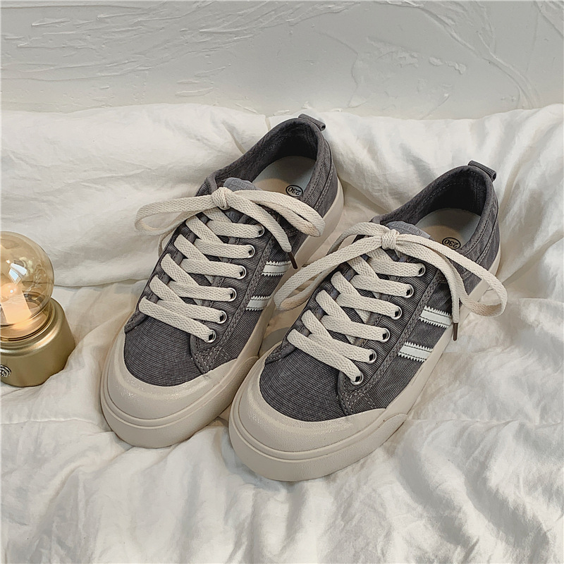 2020春季新款帆布鞋女低帮成年车缝线水洗布韩版灰色布鞋潮流女鞋