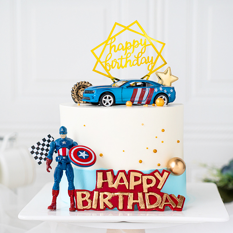 美国英雄主题蛋糕装饰插牌摆件生日快乐派对儿童男孩模型车配件