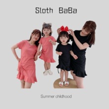 连衣裙母女2024夏装韩国童装批发 亲子装女童连衣裙修身裙子