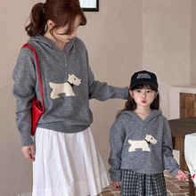 七针加厚针织帽衫母女亲子装套头毛衣可爱刺绣撞色小狗内搭打底潮