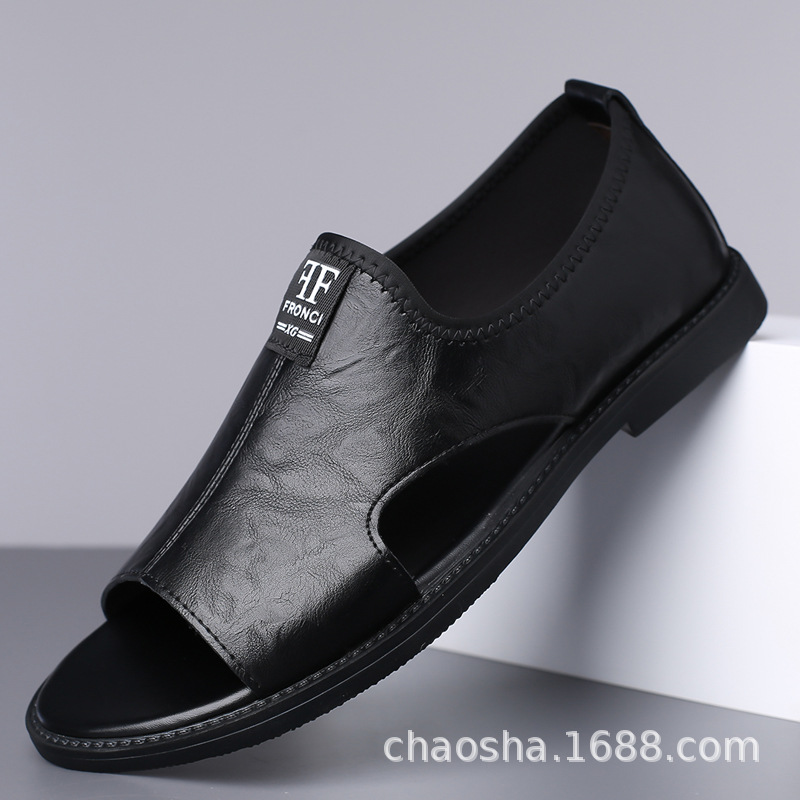 一件代发原创设计夏季真皮透气编织凉鞋男包头罗马高跟方头凉皮鞋